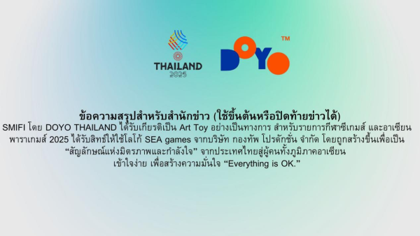 Thailand, 9th Dec 2025 – SMIFI, the original Art Toy designed and produced by DOYO THAILAND, has been officially designated as the Official Art Toy of the 33rd SEA Games 2025 and the ASEAN Para Games. Developed under the concept “Everything is OK?”, SMIFI embodies the spirit of encouragement, confidence, and unity across the ASEAN region.